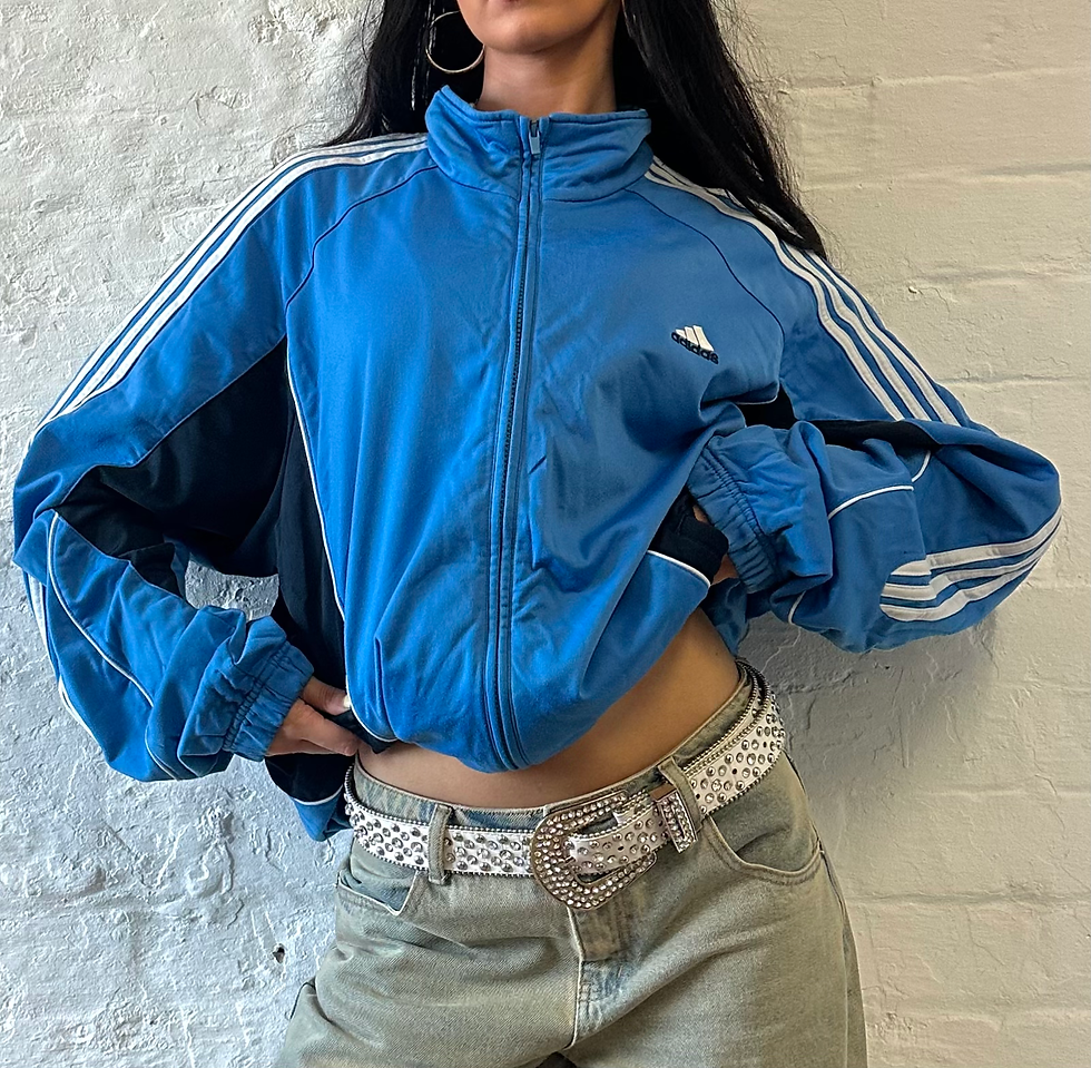 00s Adidas Blue Embroidered Logo Stripe Zip-Up Track Jacket