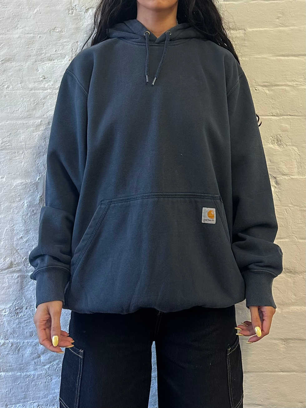 90s Carhartt Plain Navy/Grey Drawstring Hoodie with Patch Logo & Front Pocket
